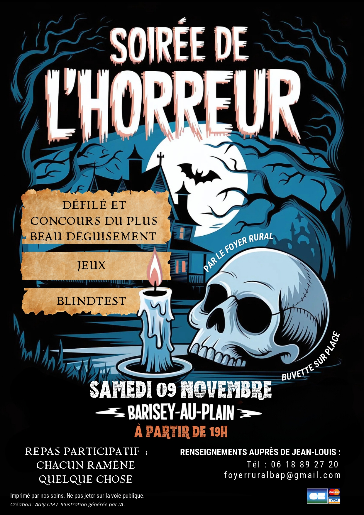 Le Foyer Rural de Barisey au Plain organise sa "Soirée de l'Horreur" 25, à partir de 19h00, à la salle des fêtes, rue Louis Siret.