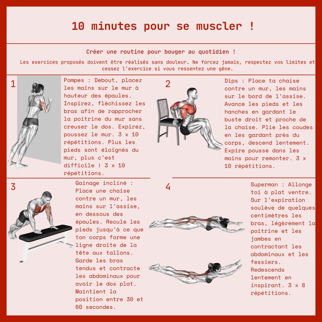 👉 Faire 10 minutes de renforcement musculaire.