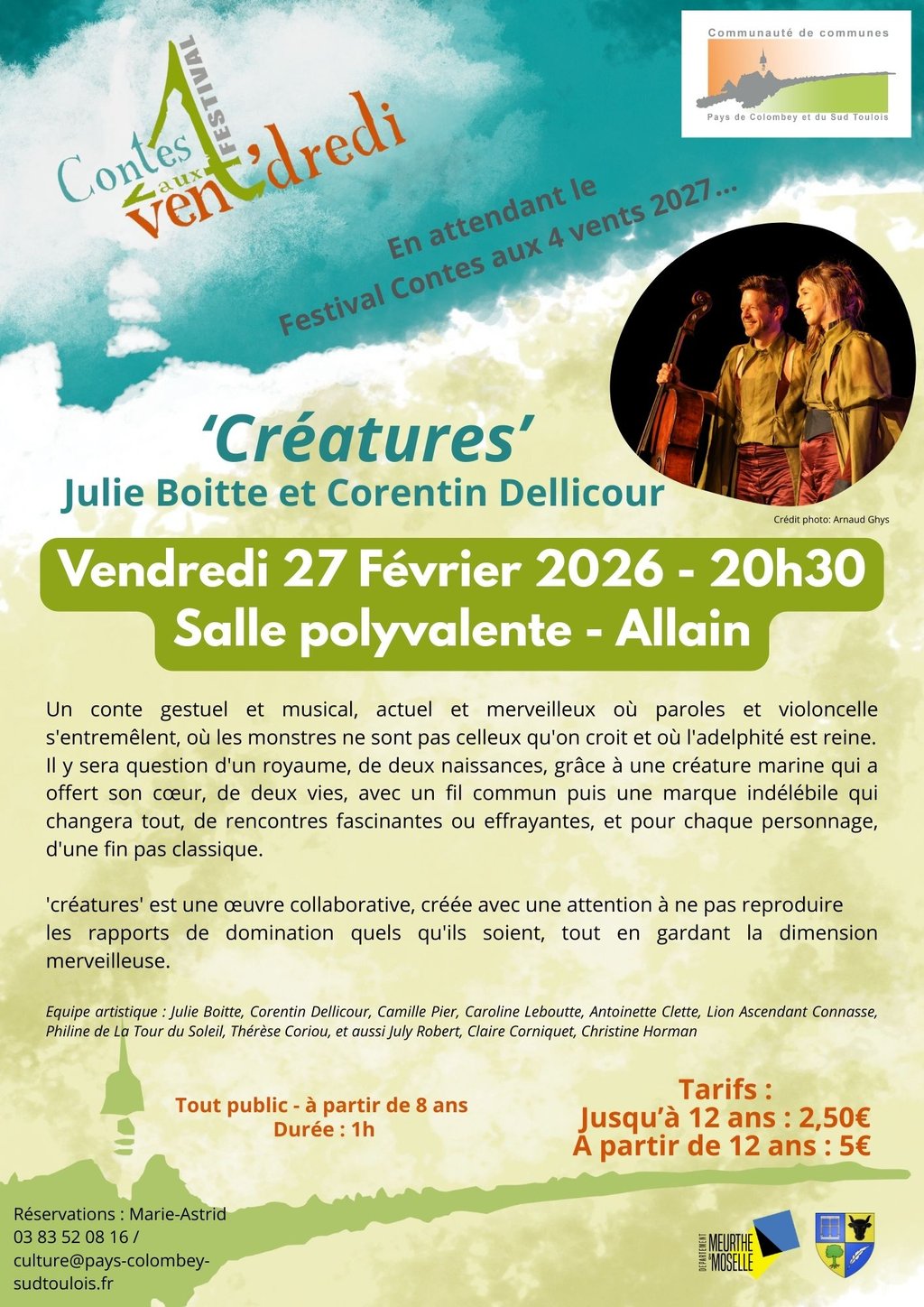 En attendant, le festival Contes aux 4 vents en septembre 2027, nous vous proposons 4 soirées Contes dans les villages de la Communauté de communes ! Le premier se déroulera à Allain, le vendredi 27 février 2026 !