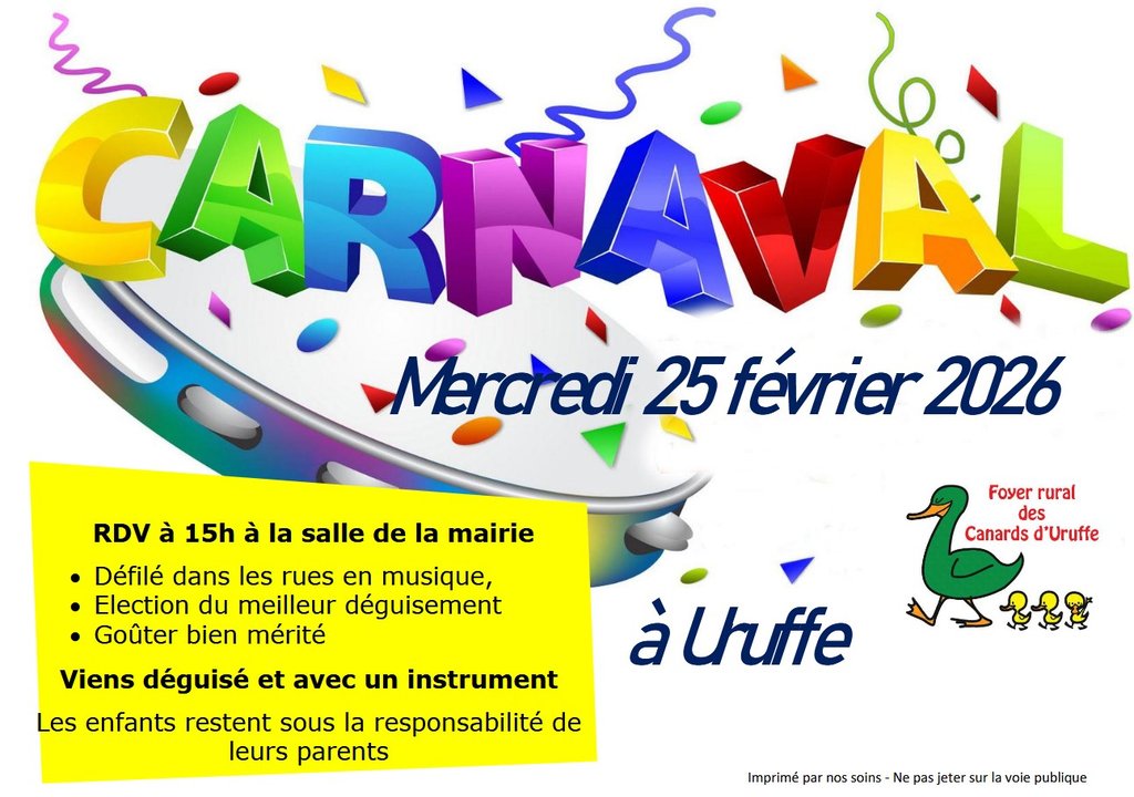Le foyer rural vous attend à 15h à la salle de la mairie pour défiler dans les rues du village.