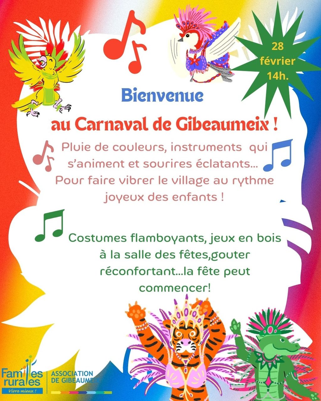 Lâassociation Familles Rurales vous donne rendez-vous pour un Carnaval haut en couleurs le samedi 28 fĂ©vrier 2026 ! đđ„ł