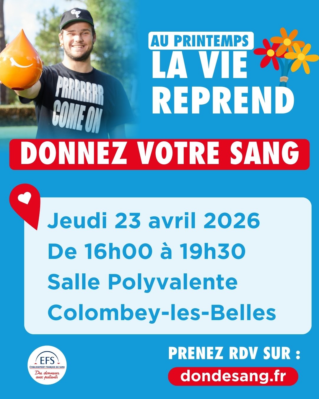 L’Etablissement Français du Sang Grand Est, en partenariat avec l’Association des Donneurs de Sang Bénévoles organise une collecte de sang dans la commune de Colombey-les-belles ce jeudi 23 avril.